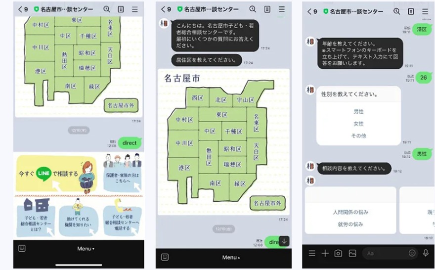 相談者の対象が名古屋市在住の15歳~39際に限定されていますので、最初に年齢・性別・お名前・ご相談内容を質問して振り分けを行っています。