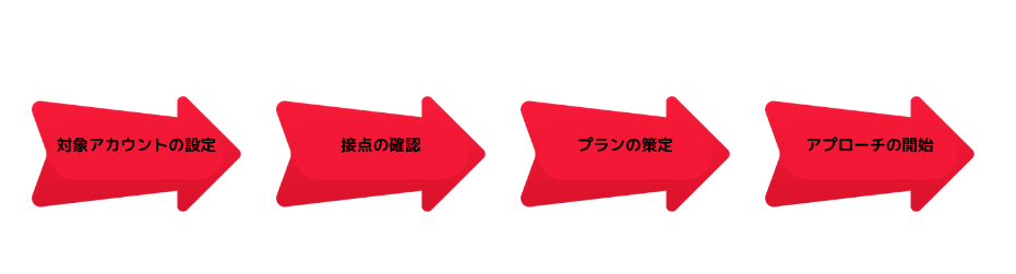 アカウントベースドマーケティングの実施方法ですが、以下の4つの流れで行うことができます。