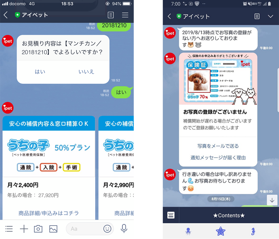 カスタマーマーケティングの事例として、LINE公式アカウントでチャットボットを導入して施策を行っているアイペット損害保険株式会社の事例があります。