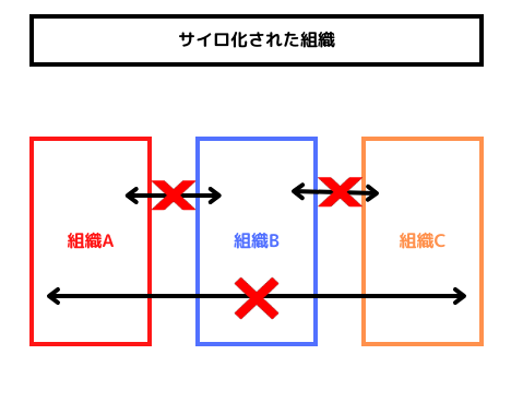 「組織のサイロ化」とは、部門や部署間の連携が取れていない状態のことを意味しています。