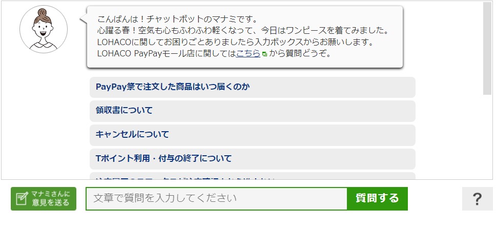 チャットボットの「LOHACOのまなみさん」を導入することでコールセンターに寄せられる問い合わせの件数を「半減」させることに成功しました。