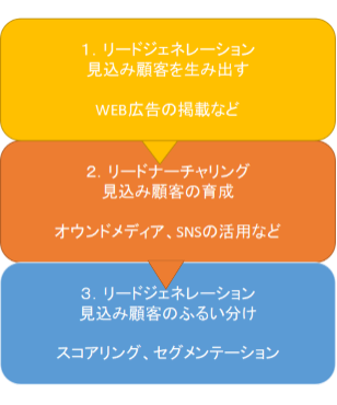 デマンドジェネレーションは大きく分けて以下の3つの段階に分けられます。
