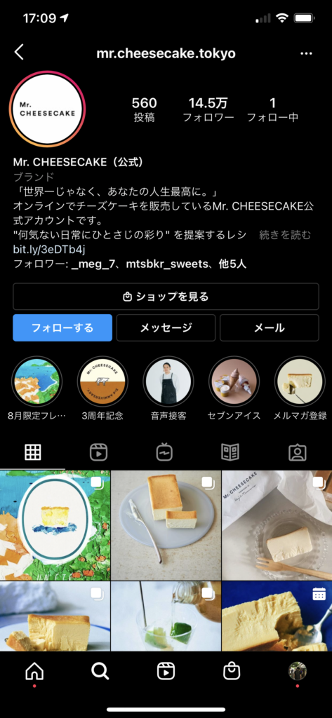 インスタグラムでチーズケーキの写真をいろいろ出すことでユーザーへのアピールも成功しています。