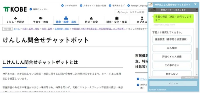 神戸市で健診の問い合わせ・申込案内のためにチャットボットを導入した事例をご紹介します。