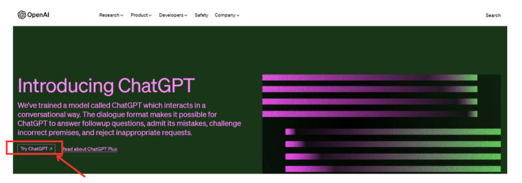再度、公式サイトにアクセスし、「TRY CHATGPT」を選択し、ログインを行ってみましょう。