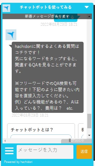 hachidoriは、以下のような多岐に渡る用途で利用できるチャットボットです。