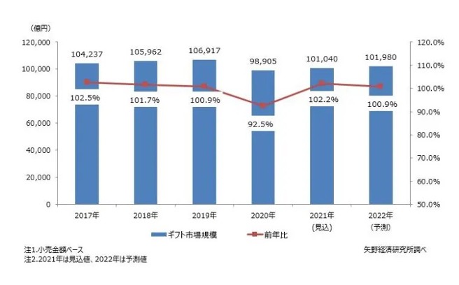 (引用:ギフト市場に関する調査を実施(2021年) | ニュース・トピックス | 市場調査とマーケティングの矢野経済研究所 (yano.co.jp) )