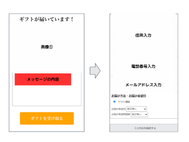 通常のECサイトでは、注文者がお届け先の情報を入力した状態で注文確定を行いますが、ソーシャルギフトでは注文確定後に受け取る側が入力しますので、「専用の入力画面」が必要になります。