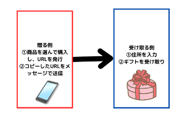 先程も少し説明しましたが、(贈る側)と(受け取る側)のそれぞれの流れは以下の通りになります。