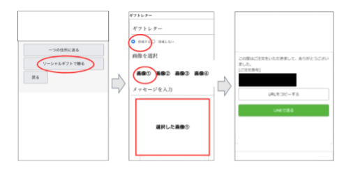 ③注文完了後、システム側で生成される専用URLを受け取り側の人にメール・SNSで送る