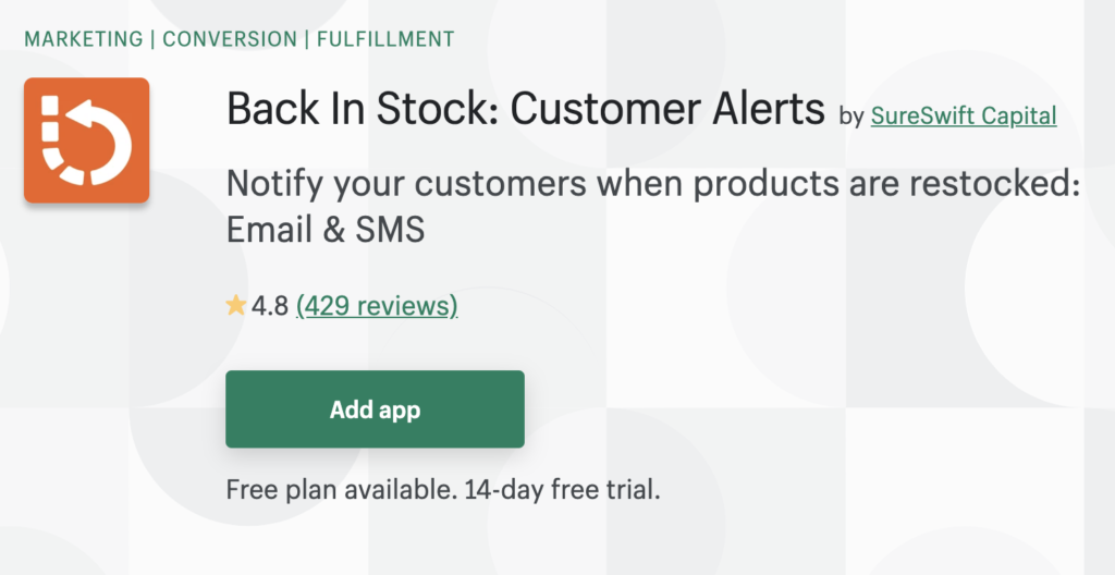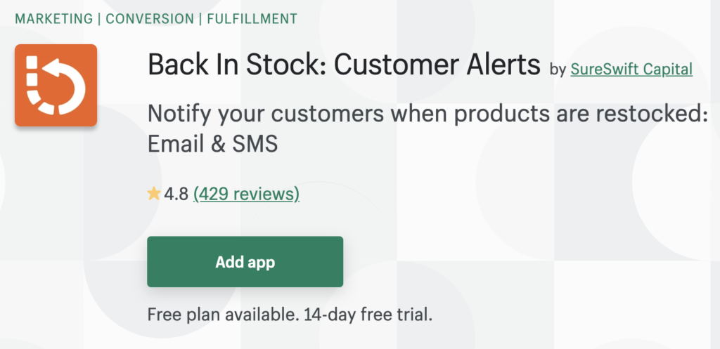 https://apps.shopify.com/back-in-stock?ot=87b66ad8-30da-4624-b3c3-bc303067e5ad&surface_detail=Back+in+Stock&surface_inter_position=1&surface_intra_position=1&surface_type=search_ad