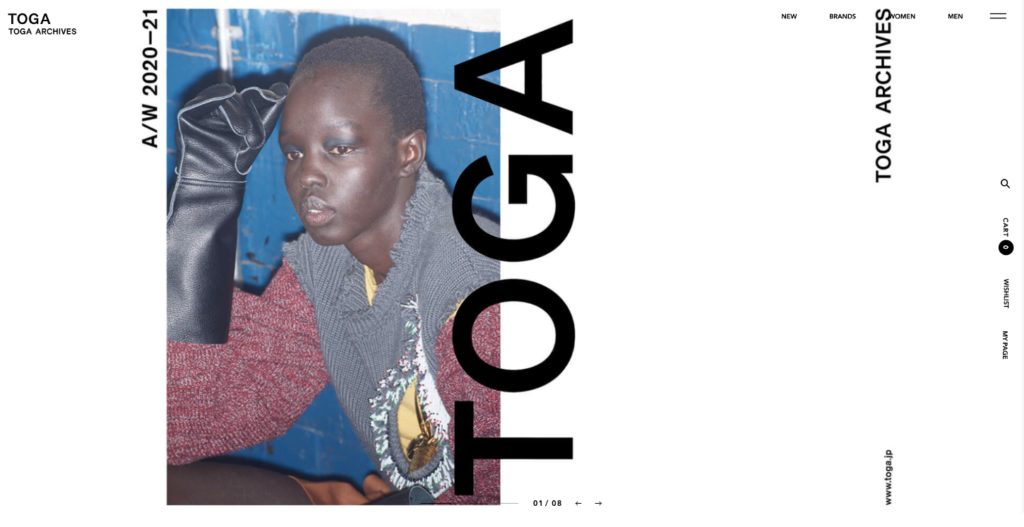 日本を代表するファッションハイブランド「TOGA(トーガ)」のECサイトShopifyで作られています。