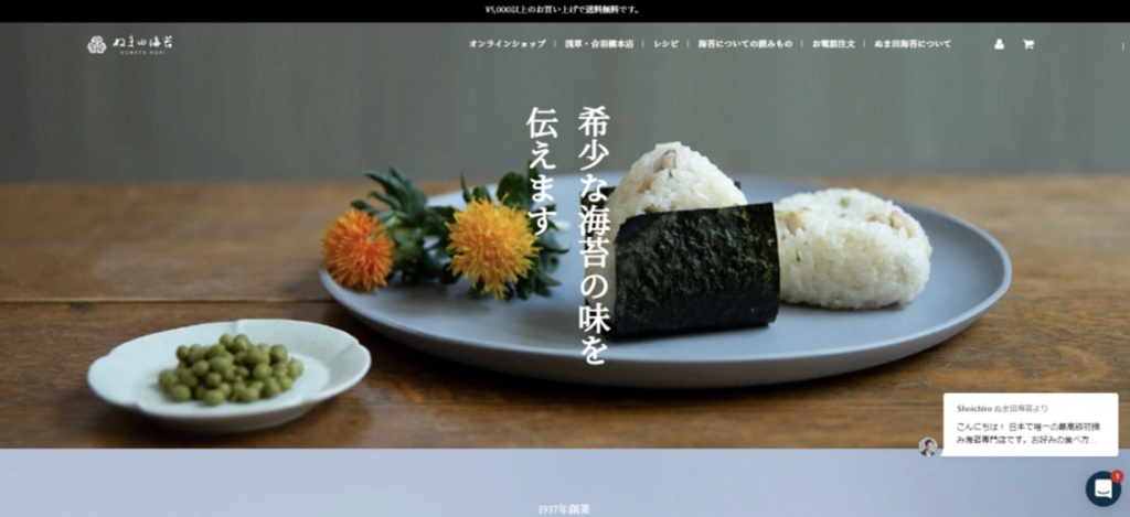 例えば、ファーストビューの「希少な海苔の味を伝えます」というメッセージ。