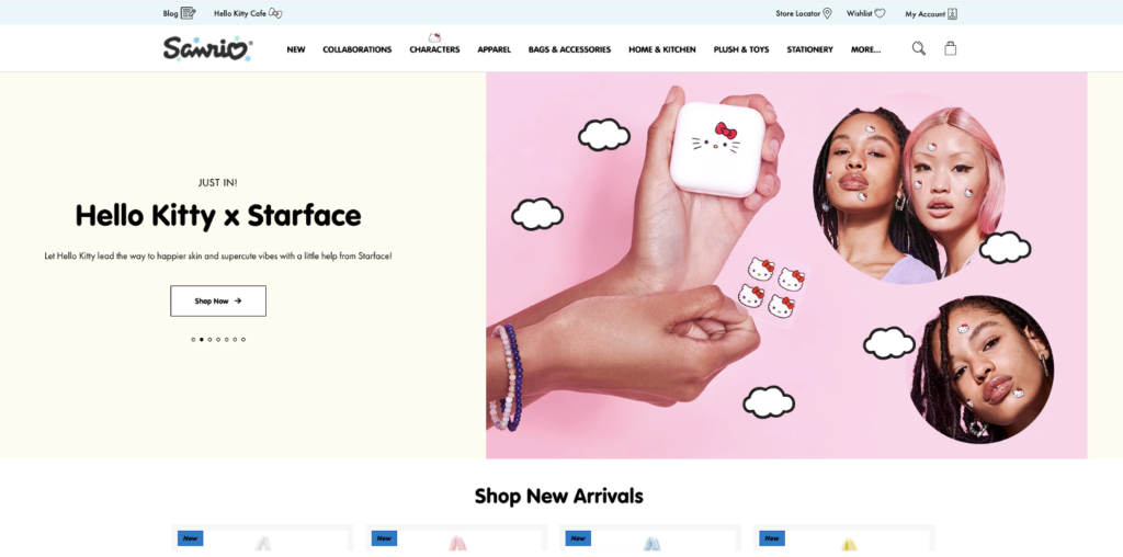 日本発祥の代表的なキャラクター「サンリオ」のイギリスとアメリカのECサイトはShopifyで作られています。