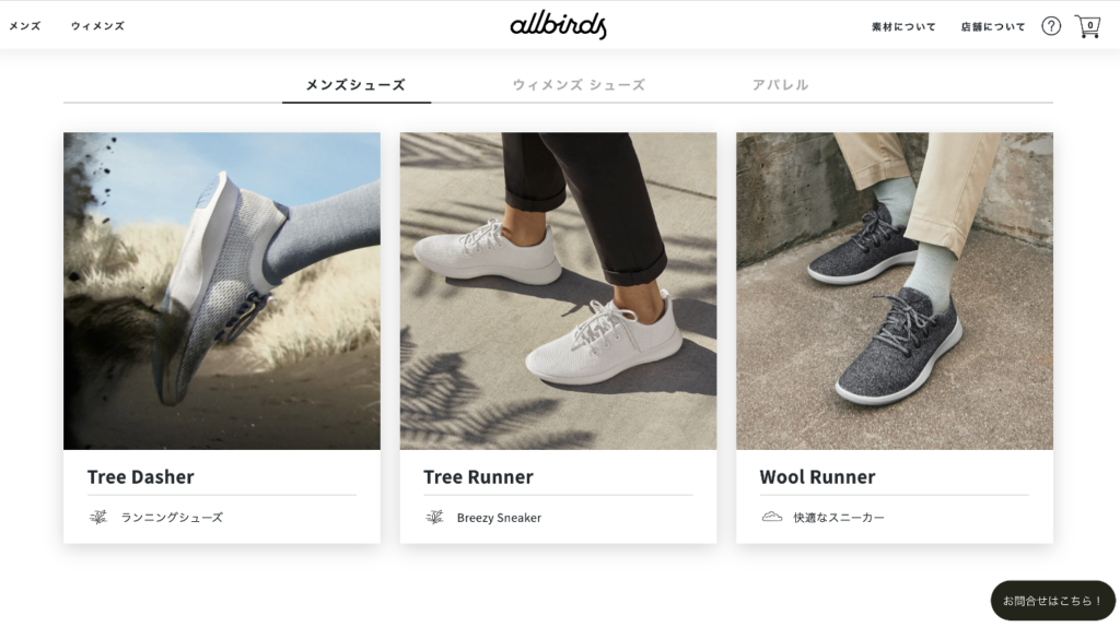 サンフランシスコ発のスニーカーブランド「Allbirds(オールバーズ)」のECサイト。