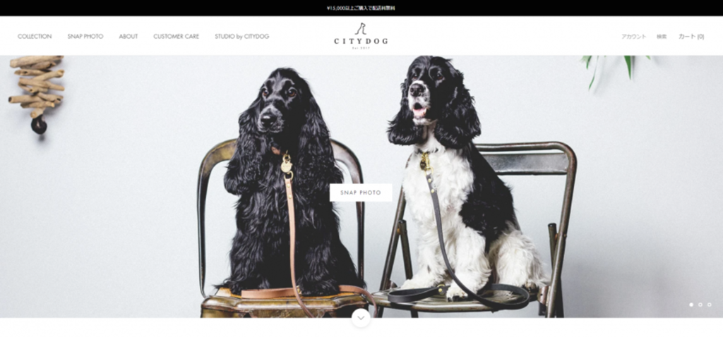 ドッググッズブランドのCITYDOG様のECサイトです。ファーストビューの可愛い犬の写真が、大切な愛犬への愛情を掻き立てます。
