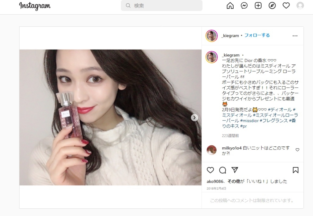 普段からフォロワーから「そのアイテムをどこで買いましたか?」というコメントが殺到しているため、コスメの投稿などを行うとフォロワーからの注目が一気に集まる状態になっています。