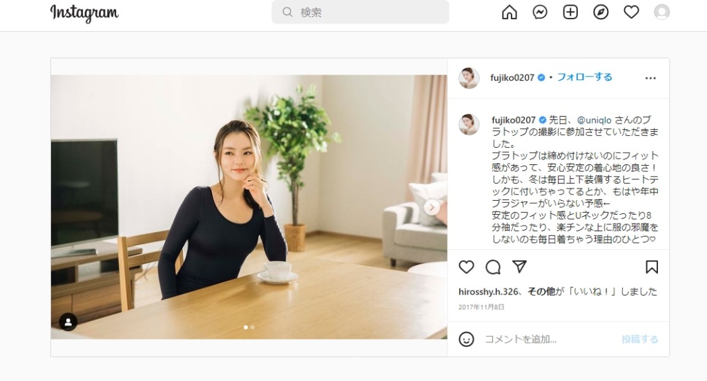 「藤井明子」さんと言われるアラフォーモデルの方には、一般人がInstagramに投稿するにはハードルが少し高い「ブラトップ」を格好良く着こなした写真を投稿して話題となっていました。