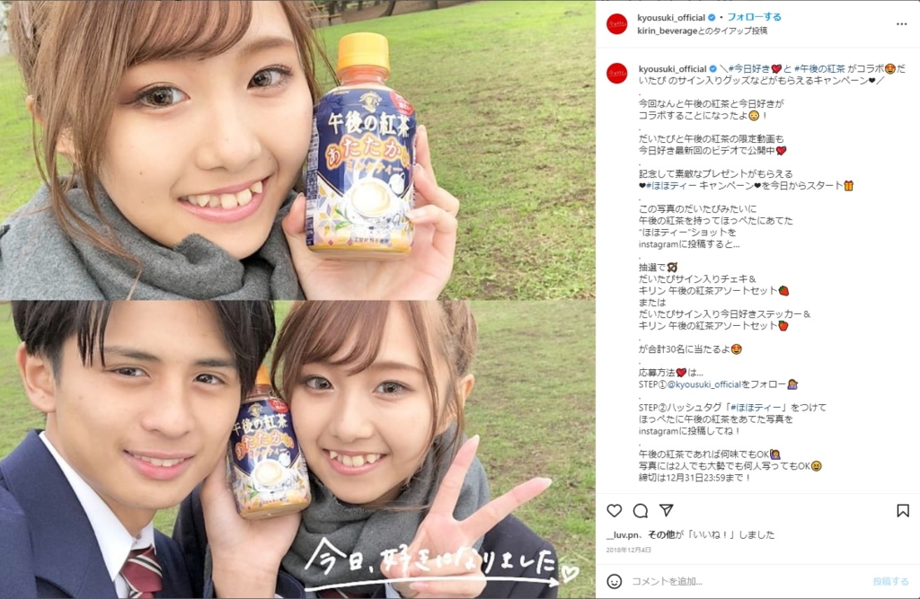 そのため「キリン」はTikTokを使用して、「ほほティー」という自分の頬に午後の紅茶をあてる写真を投稿して話題性を作りました。