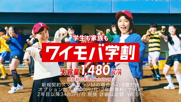 (Y!mobile(ワイモバイル)CMは野球と思いきやダンスなう!出演者は芦田愛菜・吉岡里帆・中田圭祐!ワイモバ学割 (tv-rider.jp) より引用)
