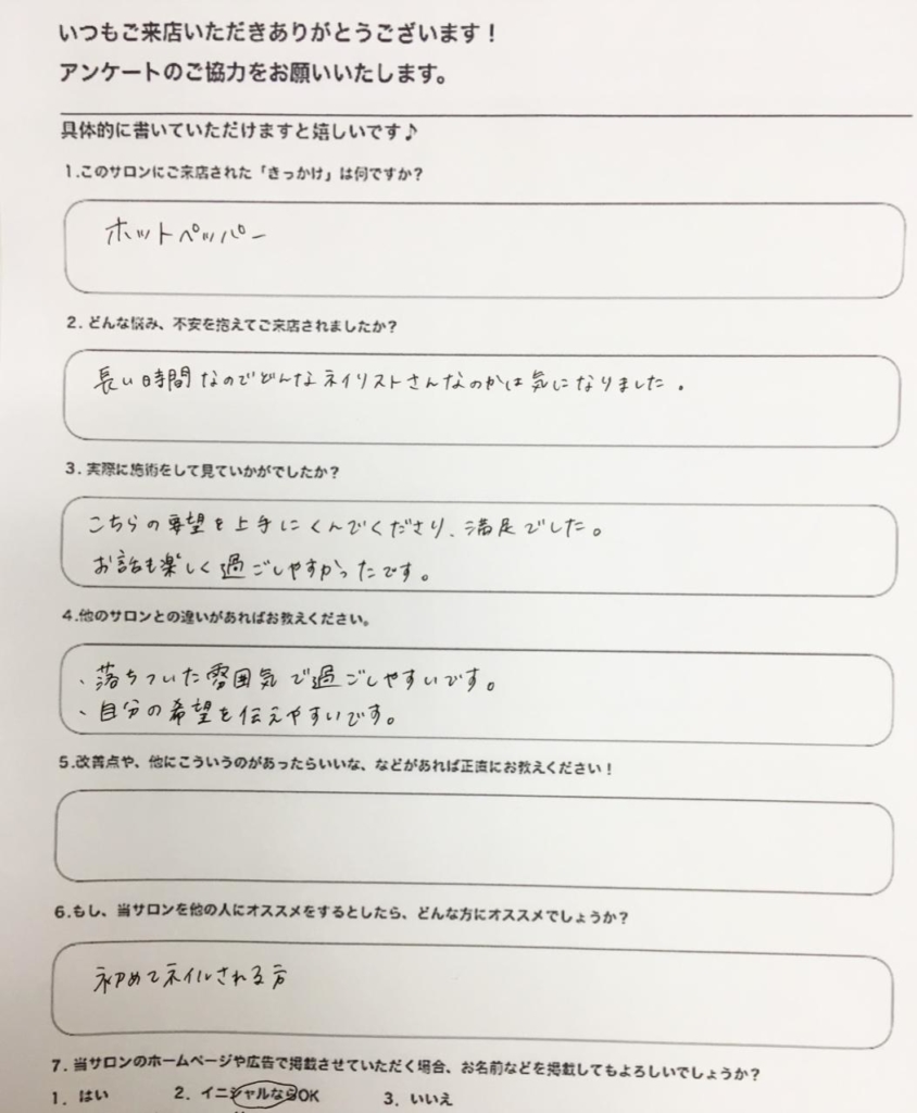 (引用:お客様アンケート実施中☆M.A様 | HOME nailsalon MOKA (moka2.net) )
