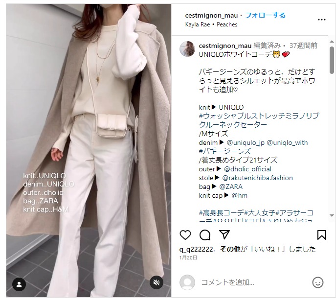 元アパレル店員のmau.さんがInstagramリール動画で、全身ユニクロコーデを披露しています。