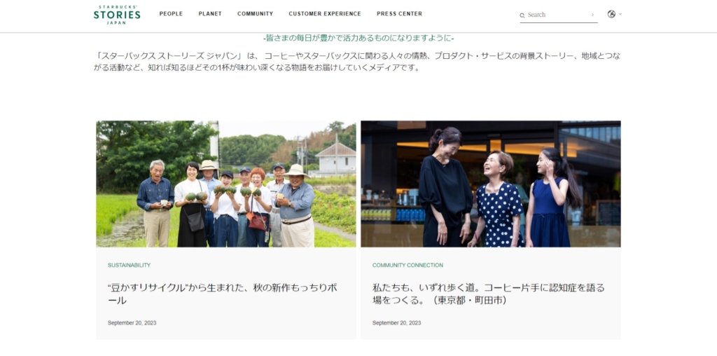 「Starbucks Stories Japan」という新オウンドメディアを立ち上げるなど、積極的に情報発信に力を入れています。