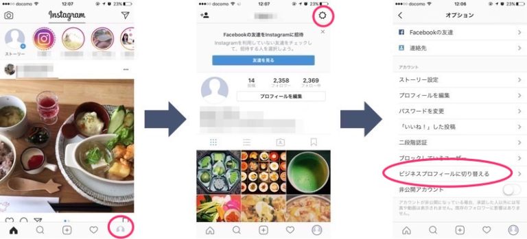 Instagramでビジネスアカウントに切り替える方法を解説していきます。