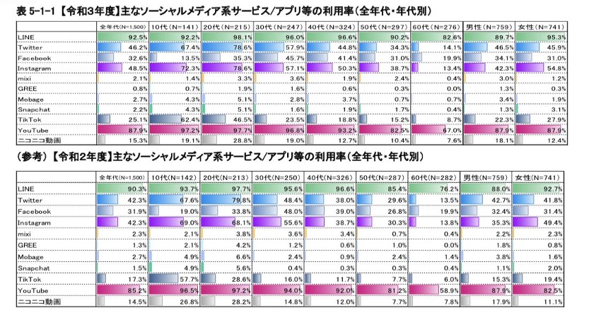 参考、画像引用 令和3年度情報通信メディアの利用時間と情報行動に関する調査報告書|総務省