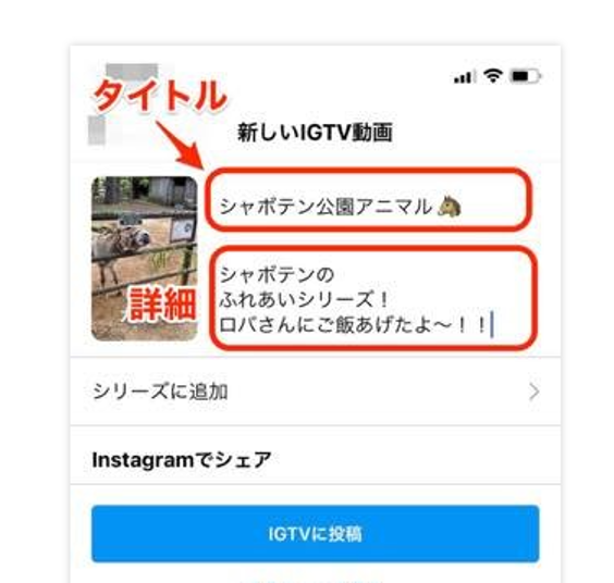 IGTVには映像を編集する機能がなく、動画を選択し、投稿画面へと移ります。