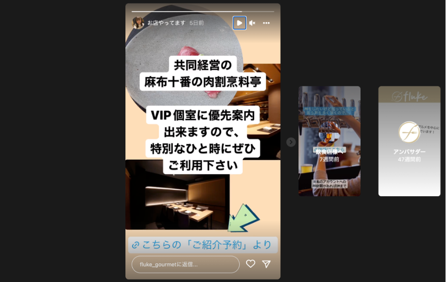 以下のアカウントは、ハイライト機能から店舗予約ページに誘導しています。
