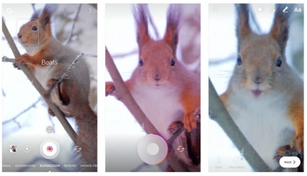 スーパーズームとは、効果音に合わせて自動でズーム動画を撮影してくれる機能です。