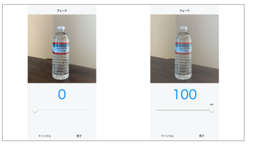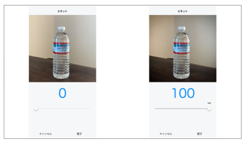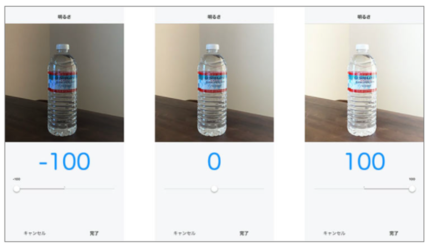 「-100」〜「100」の間で調整でき、数字が大きくなるにつれて写真が明るくなっていきます。