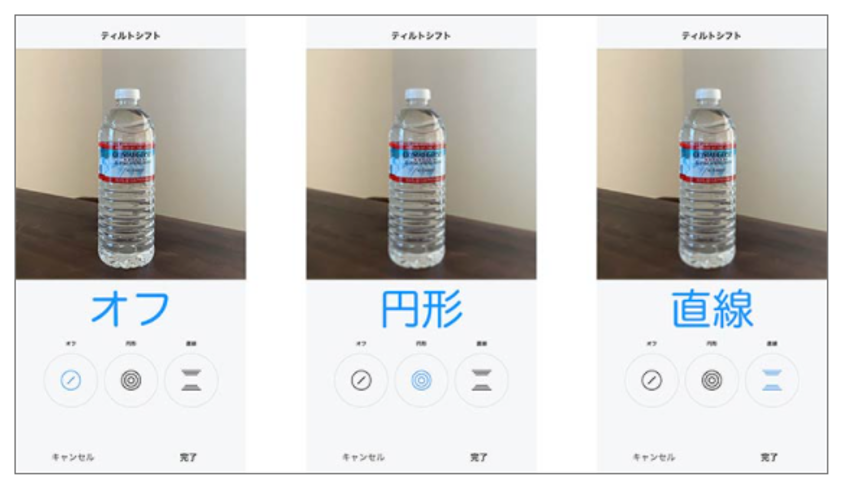 ティルトシフトは「円形」と「直線」の2種類から選択が可能です。