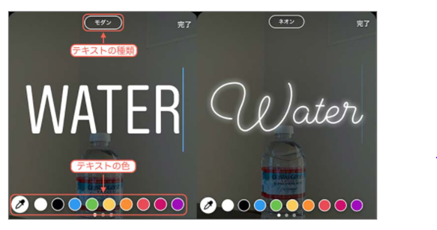 画面の上にあるテキストの種類をタップすると、違ったタイプのテキストに変わります。