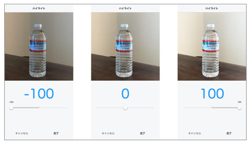 「ハイライト」では、明るい部分の強弱を調整することができます。