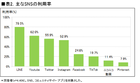 画像引用、参考 2022年度SNS利用動向に関する調査 – ICT総研