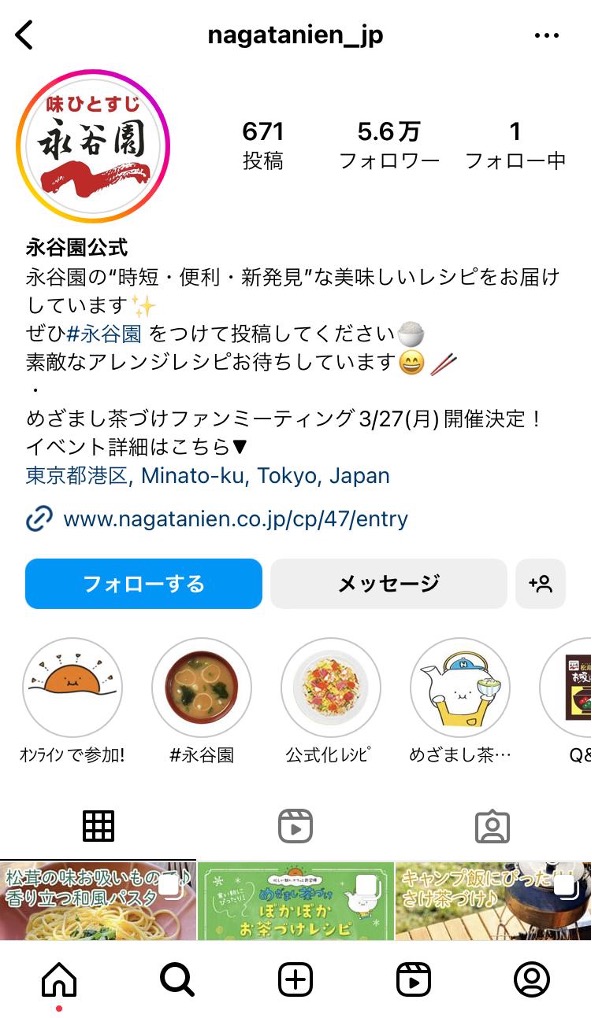「♯永谷園」というハッシュタグでUGCを収集し、週2回程度投稿をおこなっています。レシピやメニューなど、誰もが見るような投稿でユーザーに目にしてもらえるようにしています。