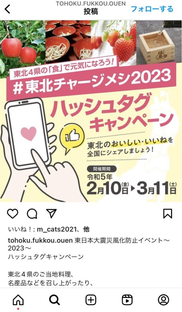 ・ハッシュタグキャンペーン開催中の旨と、付けてほしいハッシュタグが分かるようなフィードやInstagramストーリーズを投稿する