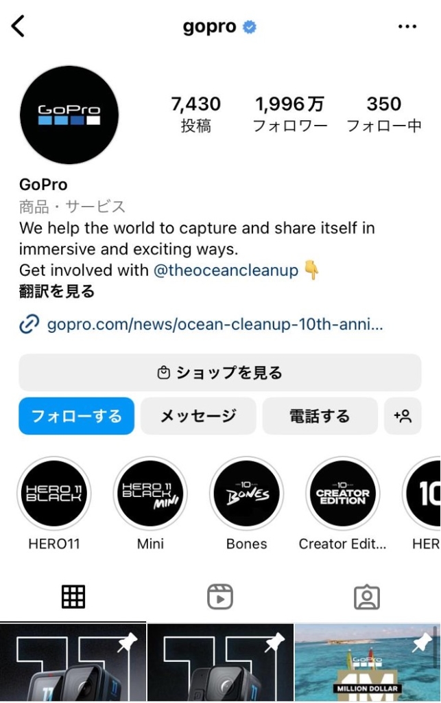 多目的カメラやウェアラブルカメラなどの多くの種類のカメラを販売している「GoPro」社のInstagramアカウントは、UGCを上手に活用している例の一つです。
