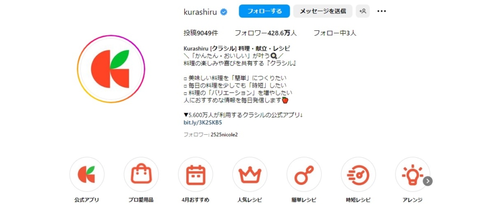 (引用:Kurashiru [クラシル] 料理・献立・レシピ(@kurashiru) | Instagram