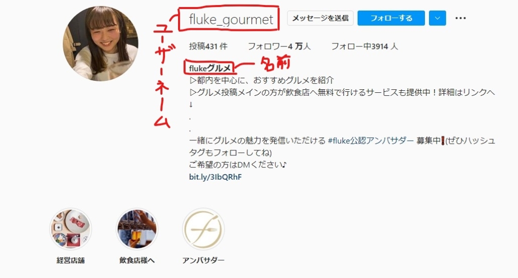 Instagram上でユーザーが検索する際に、この名前で検索されることが多いことが分かっています。