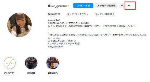 ①~③が用意出来ましたら、Instagramアプリの右上に表示されている三本線を選択します。