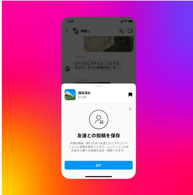(引用:保存機能をアップデート、友達とコレクションを共有できる「コラボコレクション」を導入 | Metaについて (fb.com) )