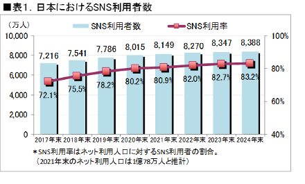 具体的には、上図「日本におけるSNS利用者数」によると、日本人の8割以上が何かしらのSNSを利用していると分かります。