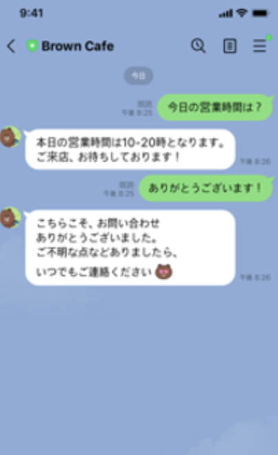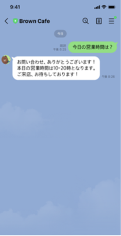 特定の言葉に反応するチャットボットで、ユーザーによって入力されるとあらかじめ設定していたメッセージを、チャットボットが自動で返信してくれます。