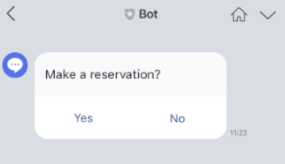 テキストに対して2択の選択肢を提示します。それぞれのボタンにアクションを設定することができます。