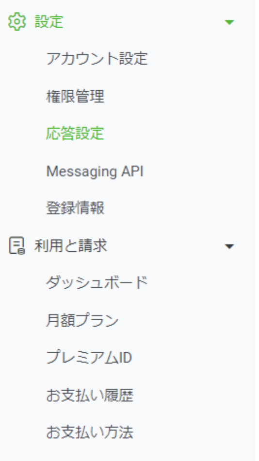 ホーム画面の左にある「応答メッセージ」から、特定の言葉に対して自動で応答してくれるメッセージを設定できます。