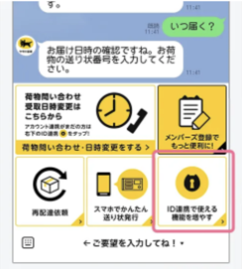 電話問い合わせや、ホームページを閲覧しないとわからなかったお届け時刻や、再発送がLINE上で対応できる利便性があります。