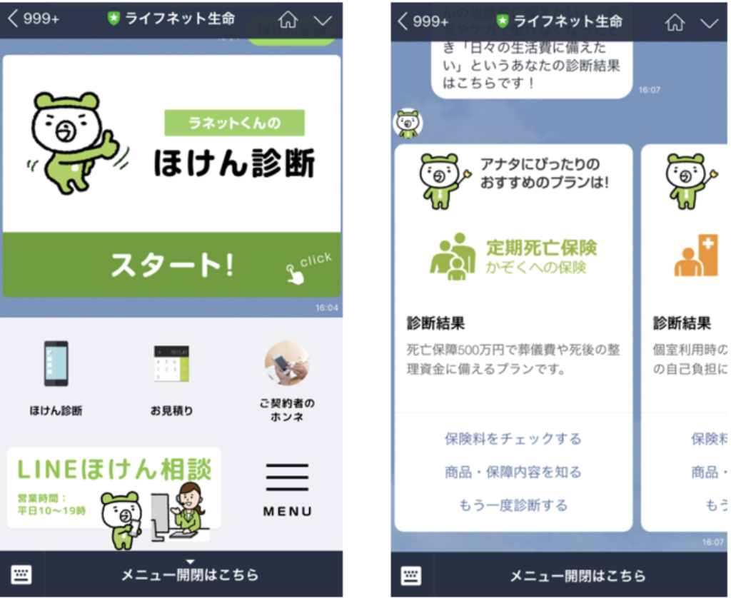 質問に答えることでユーザーに合った保険を提案してくれる「保険診断」、月の保険料がいくらくらいかかるのかがわかる「保険見積もり」があります。